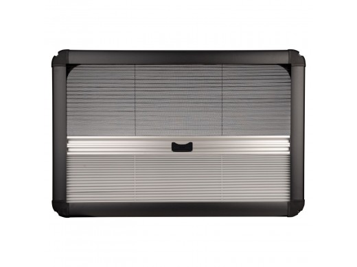 – okno wyposażone jest w zintegrowaną plisowaną roletę oraz moskitierę. Roleta pokryta jest od zewnątrz warstwą termoizolacyjną, dzięki czemu ogranicza nagrzewanie się wnętrza kampera. Roleta wyposażona jest w klips umożliwiający zintegrowanie rolety wraz z moskitierą i jednoczesne regulowanie rolety i moskitiery przy użyciu jednej ręki,