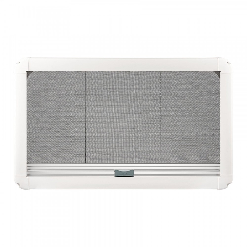 – okno wyposażone jest w zintegrowaną plisowaną roletę oraz moskitierę. Roleta pokryta jest od zewnątrz warstwą termoizolacyjną, dzięki czemu ogranicza nagrzewanie się wnętrza kampera. Roleta wyposażona jest w klips umożliwiający zintegrowanie rolety wraz z moskitierą i jednoczesne regulowanie rolety i moskitiery przy użyciu jednej ręki,