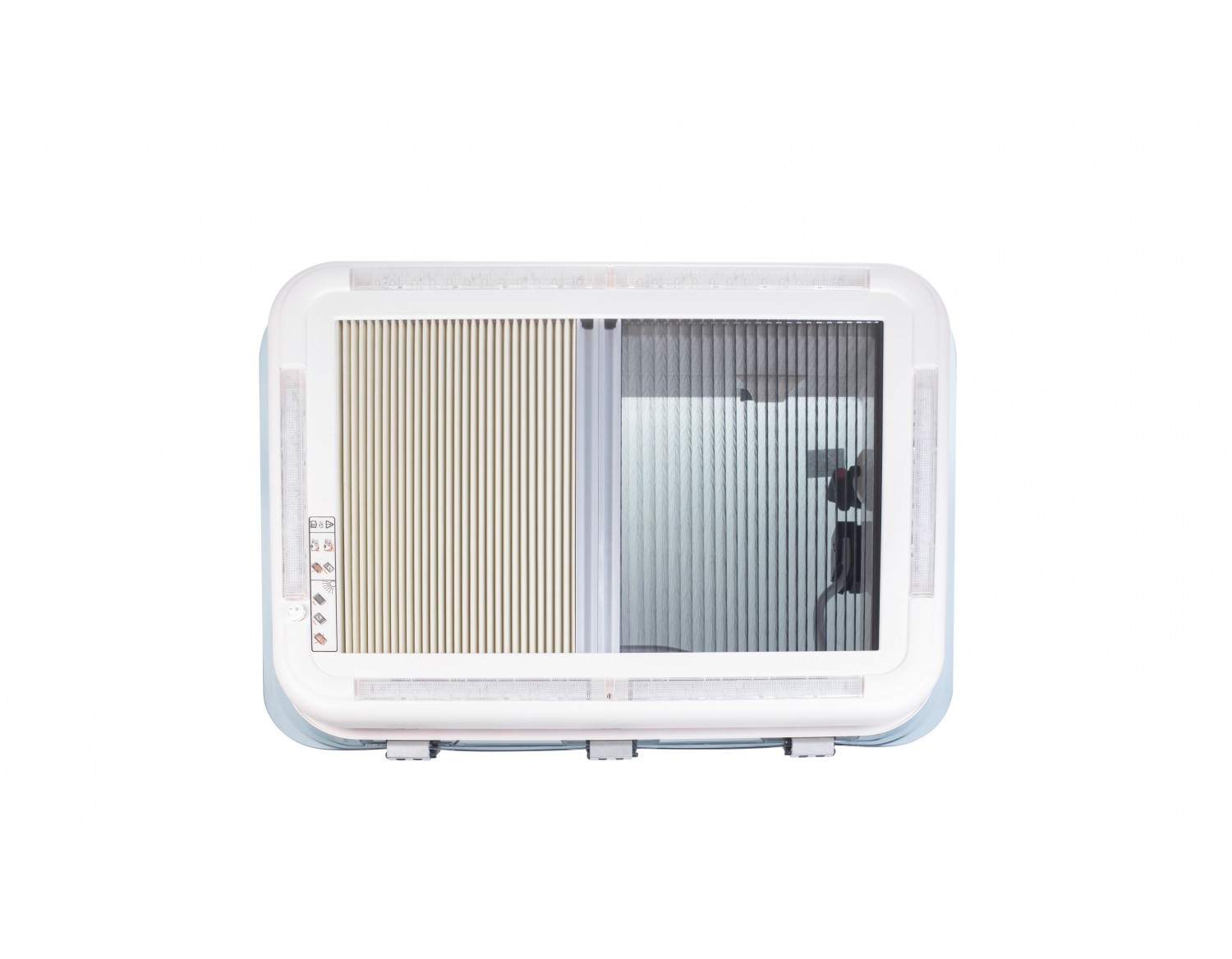 – roleta pokryta jest od zewnątrz warstwą termoizolacyjną, dzięki czemu ogranicza nagrzewanie się wnętrza kampera. Dzięki magnetycznemu łączeniu moskitiery z roletą możliwa jest jednoczesna ich regulacja przy użyciu jednej ręki,