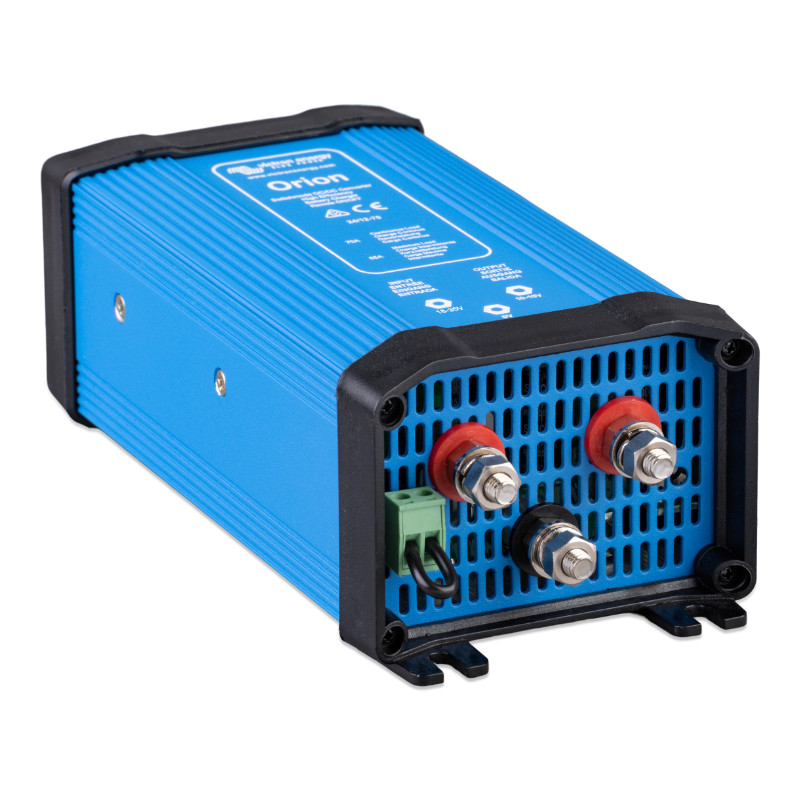 Mocny konwerter Victron Orion 24/12-70 DC/DC 70A przekształca napięcie 24 V na stabilne 12 V. Wyposażony w funkcję zdalnego sterowania, wspiera instalacje solarne, kampery i łodzie. Niezawodność i wysoka wydajność w wymagających systemach.