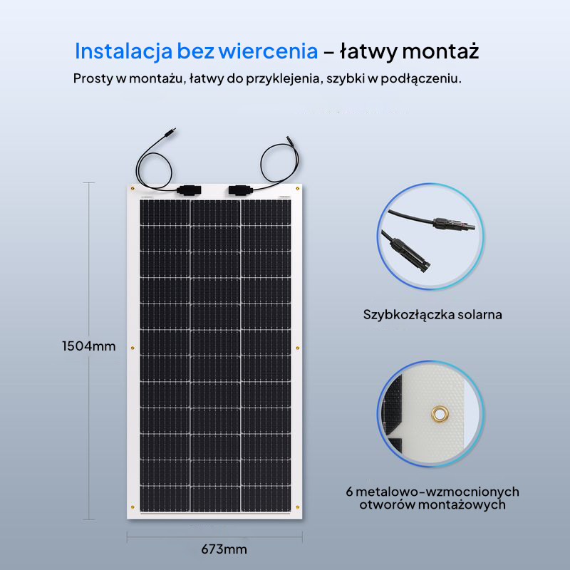 • Ekstremalnie niska waga – tylko 2,8 kg (70% lżejszy od tradycyjnych paneli)