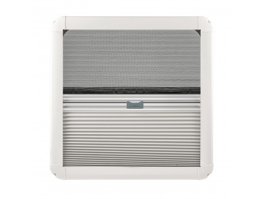 – roleta pokryta jest od zewnątrz warstwą termoizolacyjną, dzięki czemu ogranicza nagrzewanie się wnętrza kampera. Roleta wyposażona jest w klips umożliwiający zintegrowanie rolety wraz z moskitierą i jednoczesne regulowanie rolety i moskitiery przy użyciu jednej ręki,
