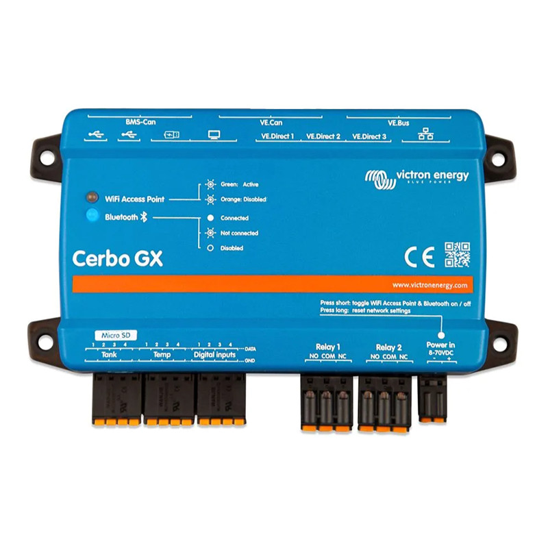Cerbo GX – Cerbo GX to centralna jednostka monitorująca systemy Victron Energy, zapewniająca pełną kontrolę nad wszystkimi komponentami. Zdalne monitorowanie oraz możliwość podłączenia wyświetlacza GX Touch 50 sprawiają, że zarządzanie systemem energetycznym staje się prostsze i bardziej intuicyjne.